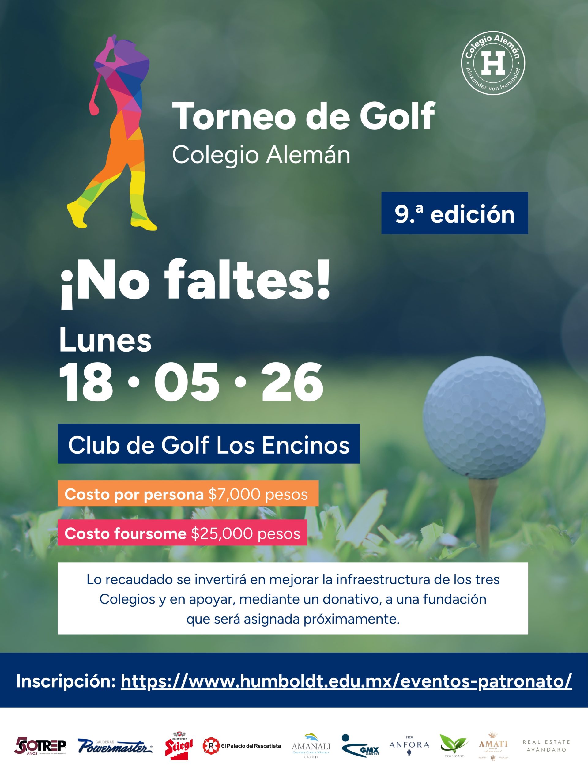 ¿Juegas golf? Disfruta de un gran día en el green y súmate a un proyecto con impacto. Lo recaudado se destinará a mejorar la infraestructura de nuestros tres Colegios y a apoyar una fundación solidaria.