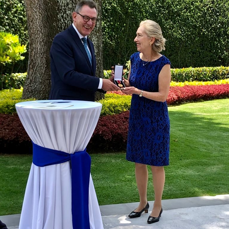 Jul192021 Renate Boker recibió la Medalla de la Orden del Mérito de la República Federal de Alemania Leer más